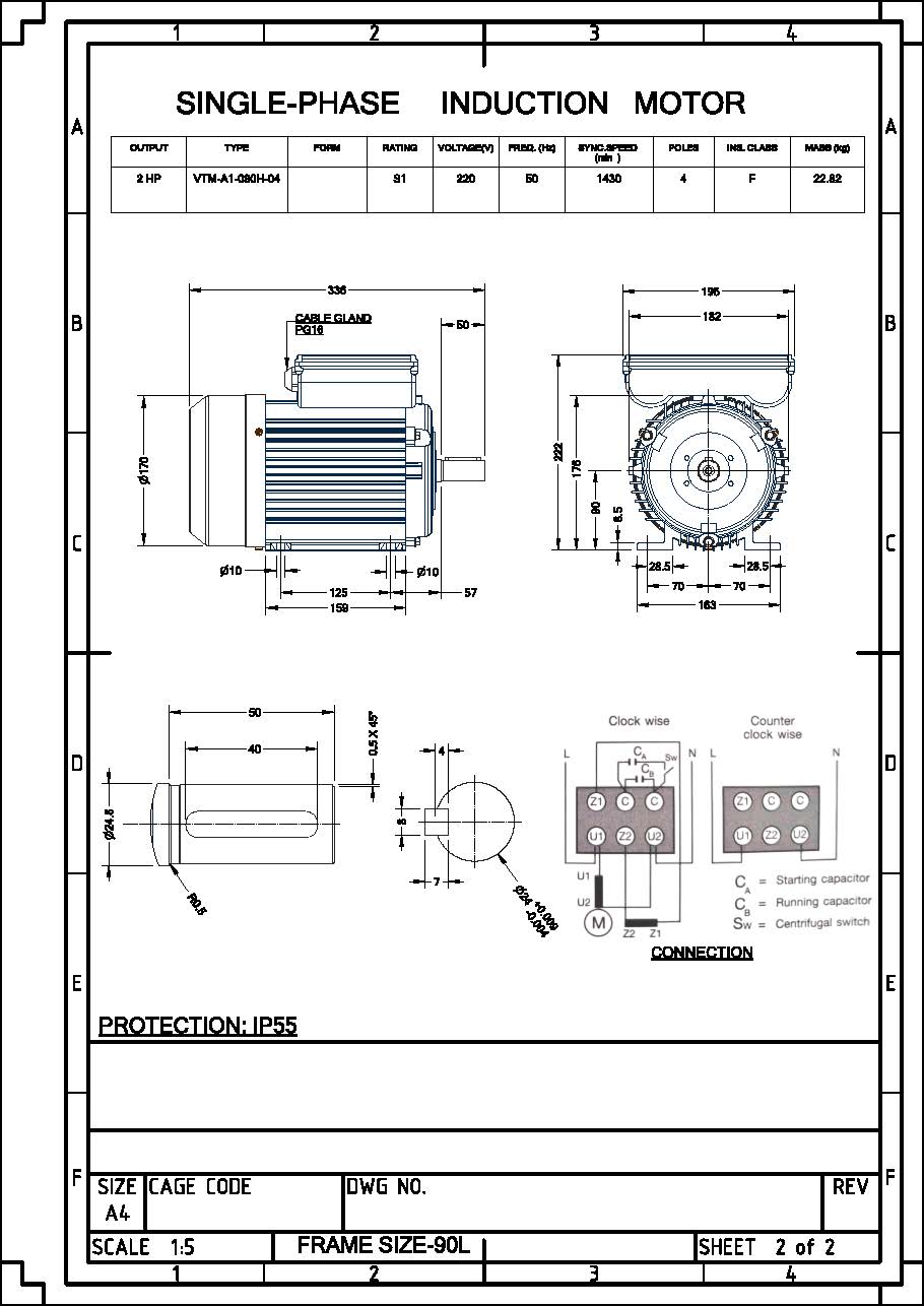 มอเตอร์วาตะ VATA รุ่น VT 2HP ขนาด 2 แรงม้า ไฟฟ้า 220V