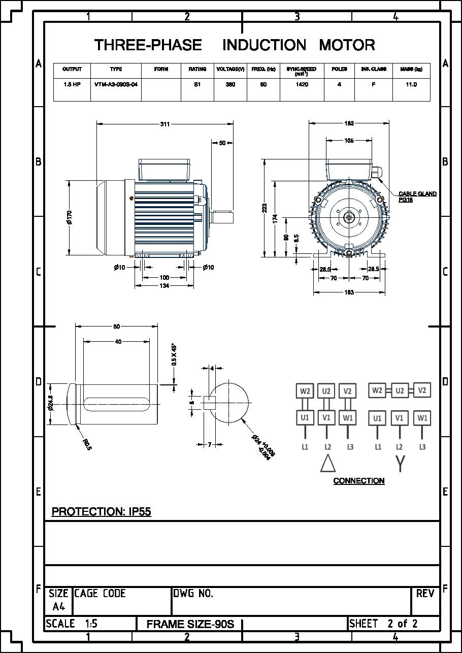 มอเตอร์วาตะ VATA 1.5 แรงม้า รุ่น VTM 1.5HP 4P ไฟฟ้า 380V IP55