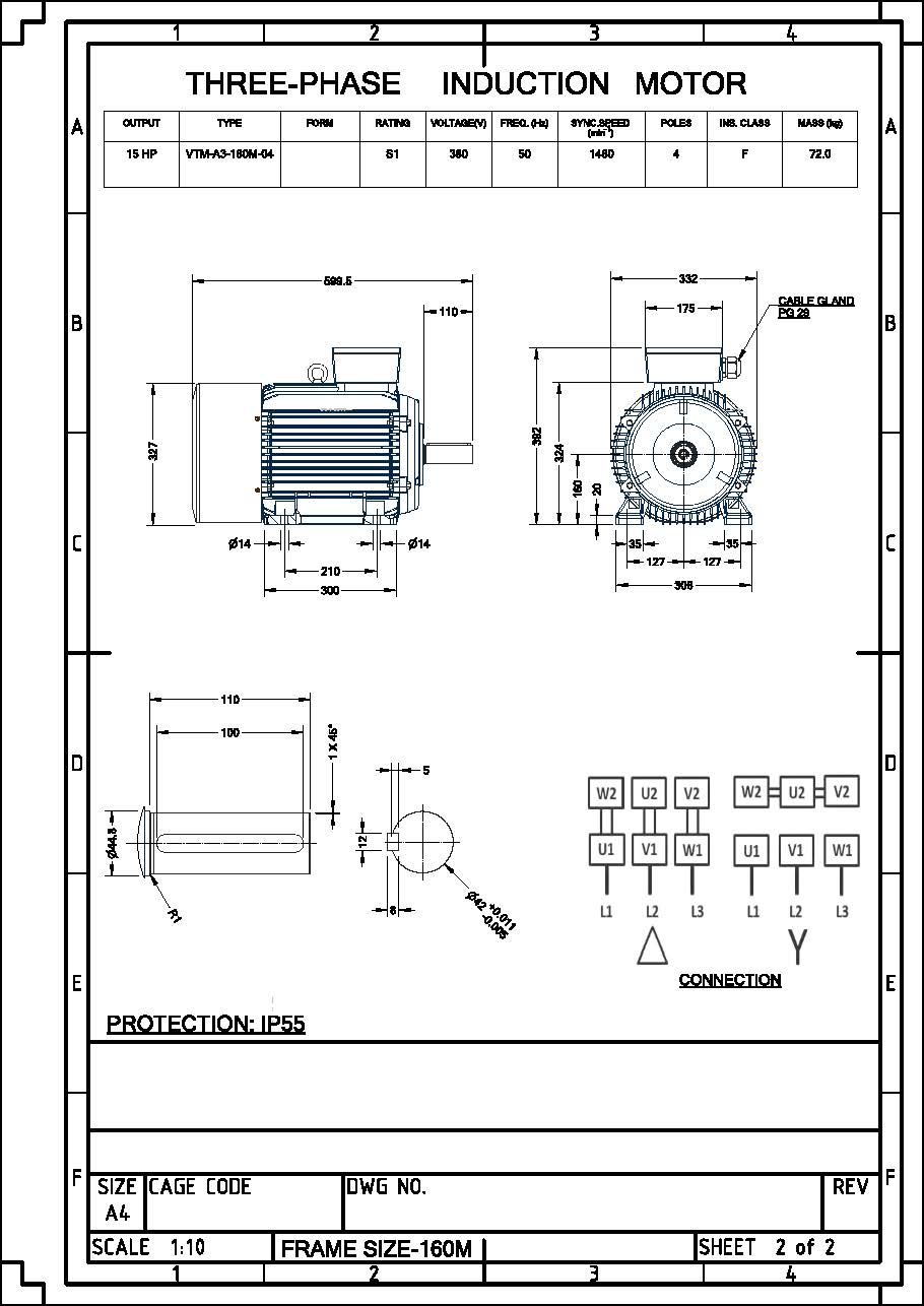 มอเตอร์วาตะ VATA 15 แรงม้า รุ่น VTM 15HP 4P ไฟฟ้า 380V IP55