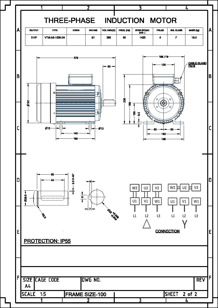 มอเตอร์วาตะ VATA 3 แรงม้า รุ่น VTM 3HP 4P ไฟฟ้า 380V IP55